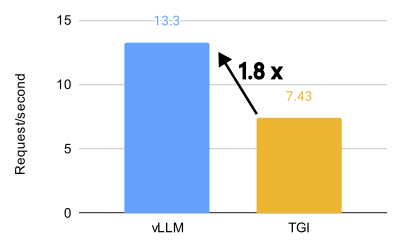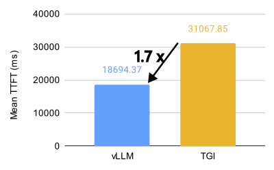 vLLM unlocks incredible performance on the AMD MI300X, achieving 1.5x higher throughput and 1.7x faster time-to-first-token (TTFT) than Text Generation Inference (TGI) for Llama 3.1 405B. It also achieves 1.8x higher throughput and 5.1x faster TTFT than TGI for Llama 3.1 70B.
